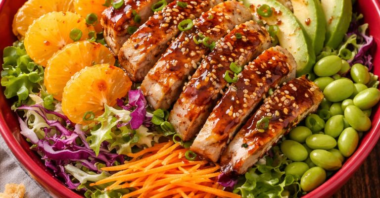 Hawaiian BBQ Chicken Salad Bowl with Sweet Chili Vinaigrette