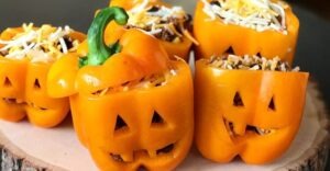 BBQ Jack-o-Lantern Stuffed Peppers with Azeka’s Maui Original Sauce